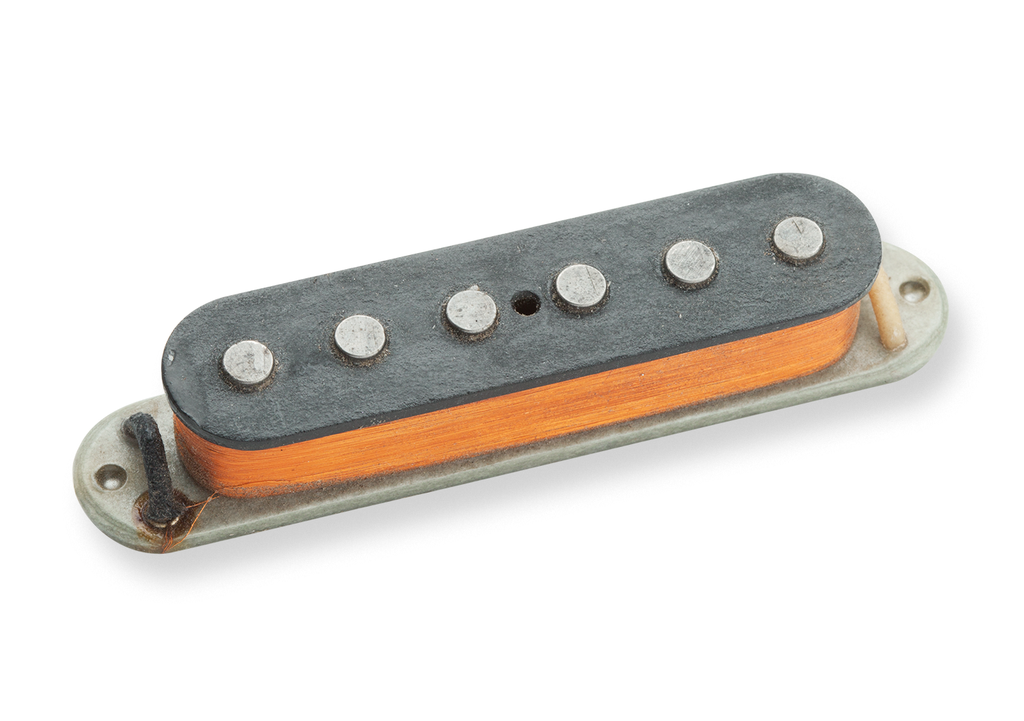 The mid-’60s Jaguar was an important part of the Surf sound for dozens of Southern California bands and was heard on countless TV and movie soundtracks. This pickup recreates that classic sound. Our custom Antiquity ageing process adds a sweetness to this pickups top end, while retaining its bright, chimey focus, even if you are playing through a wash of reverb. Use with the RWRP Antiquity II Jaguar neck pickup so that, when used together, they will be hum-cancelling. This pickup is a drop-in replacement for any Fender American Standard sized Jaguar pickup and will fit into the existing cover and claw. Hand-built in our Custom Shop, this pickup uses hand ground alnico 5-rod magnets, a custom coil wind with heavy formvar mag wire, vintage-correct bottom grey flatwork, cloth push-back lead wire, and they are all lacquered and wax potted like the originals.
