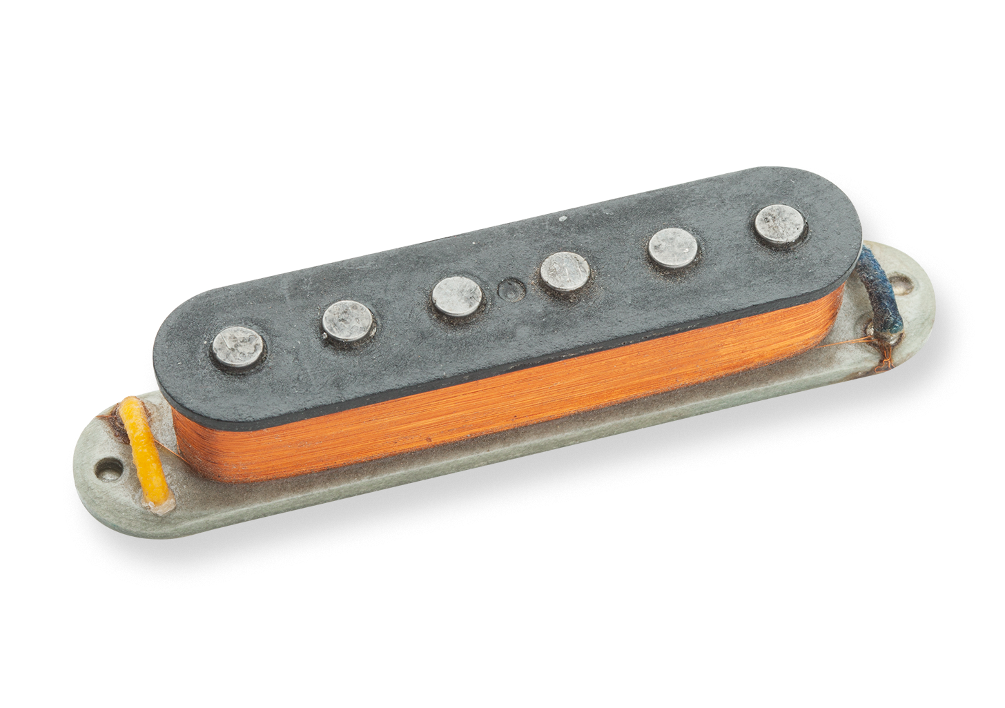 The mid-’60s Jaguar was an important part of the Surf sound for dozens of Southern California bands and was heard on countless TV and movie soundtracks. This pickup recreates that classic sound. Our custom Antiquity ageing process adds a sweetness to this pickups top end, while retaining its bright, chimey focus, even if you are playing through a wash of reverb. The Antiquity II Jet Jaguar neck pickup is wound RWRP so that, when used together with the bridge model, they will be hum-cancelling. This pickup is a drop-in replacement for any Fender American Standard sized Jaguar pickup and will fit into the existing cover and claw. Hand-built in our Custom Shop, these pickups use hand ground alnico 5-rod magnets, a custom coil wind with heavy formvar mag wire, vintage-correct bottom grey flatwork, cloth push-back lead wire, and they are all lacquered and wax potted like the originals.