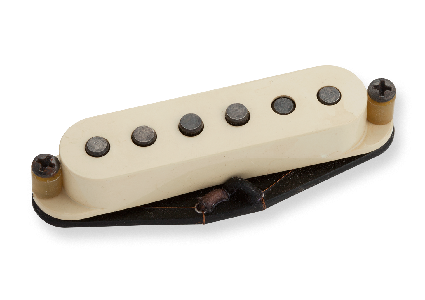 Take your Stratocaster on a ride through decades of seminal genre defining tones from rock, surf, country and blues with the Antiquity II Surfer Set. The Antiquity II Surf Neck provides that smooth and chimey bounciness that only a Stratocaster can produce. Our specially calibrated alnico 5 rod magnets and custom scatter wound coil give the treble attack a subtle sweetness without losing any of the harmonic sparkle. The middle pickup in the set is RW/RP for the perfect hum-free cluck in the 2 and 4 positions. The Antiquity II Surf for Strat Custom Bridge pickup is wound to have extra midrange and output for a more versatility. We wind these 50% hotter for more mids, and then slightly soften the treble attack by degaussing the alnico 5 rod magnets. It cuts through the mix much more easily than a traditional Strat bridge pickup, while still retaining that classic Stratocaster tonal character. Solos will jump out more musically, and chords will ring with the perfect amount of midrange sparkle. Hand built in our Custom Shop, each pickup is aged to look and sound like a 1960s original. We use vintage correct blue/yellow cloth pushback lead wire, light gray bottom flatwork, and custom aged covers for just the right look. They are all lacquered and wax potted.
