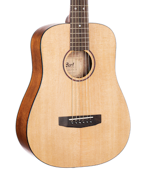 As Cort’s homage to the great vintage acoustic guitars, the Earth Series represents the look, sound, feel and playability of those fine instruments with uncompromising quality and excellent value. Ideal for both flatpicking and fingerstyle players, this is a 3/4 size mini dreadnought solid Sitka spruce top acoustic guitar.