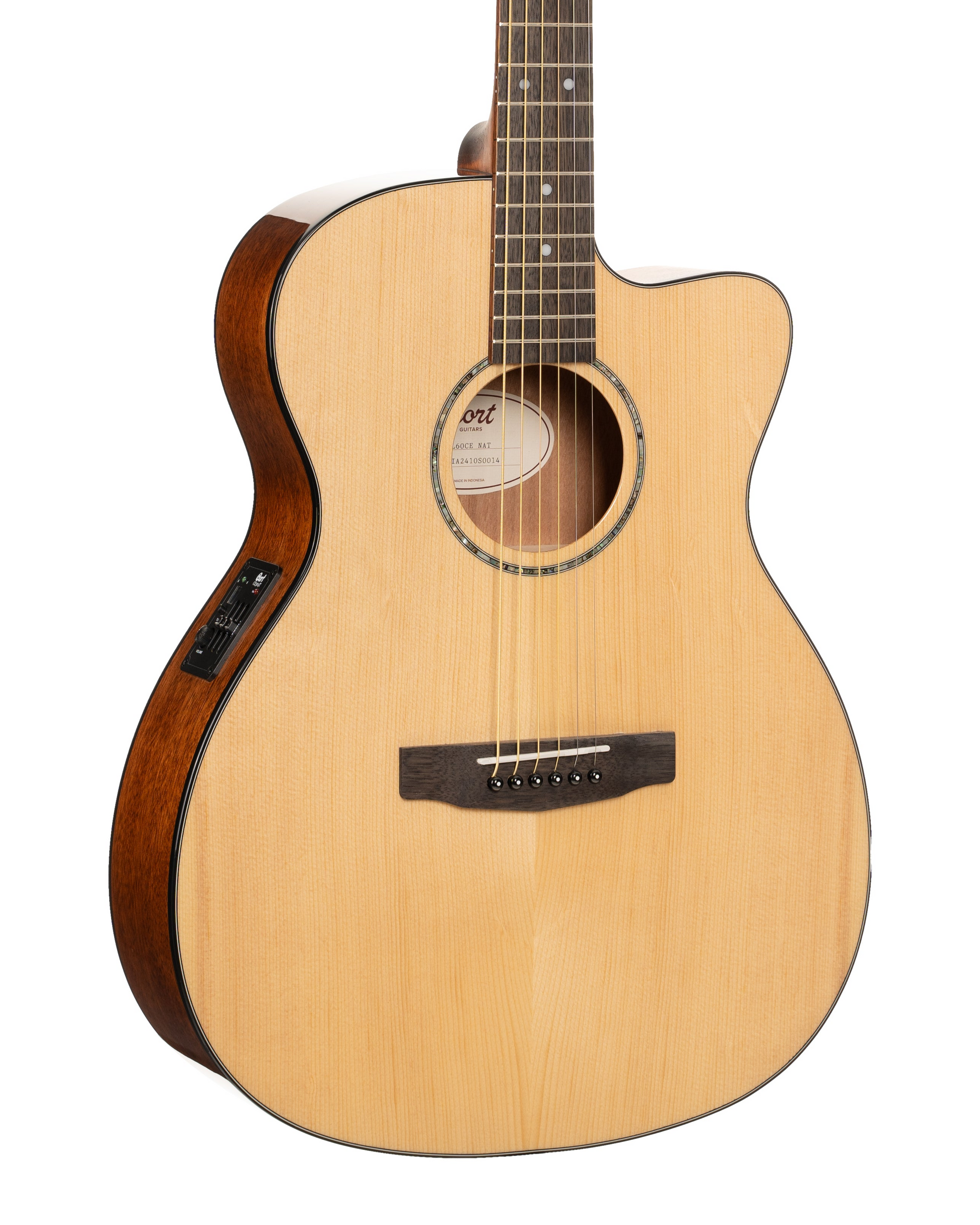 The All New 60 Series brings together quality craftsmanship and affordability, offering impressive sound and playability. Both the Earth60 Series and L60 Series feature solid top construction — available in spruce or mahogany — paired with mahogany back and sides for a warm, balanced tone. A simple yet elegant abalone rosette, complemented by white-black purfling, enhances the classic look, while the updated Cort logo on the headstock and soundhole label adds a modern touch to complete the refined design.