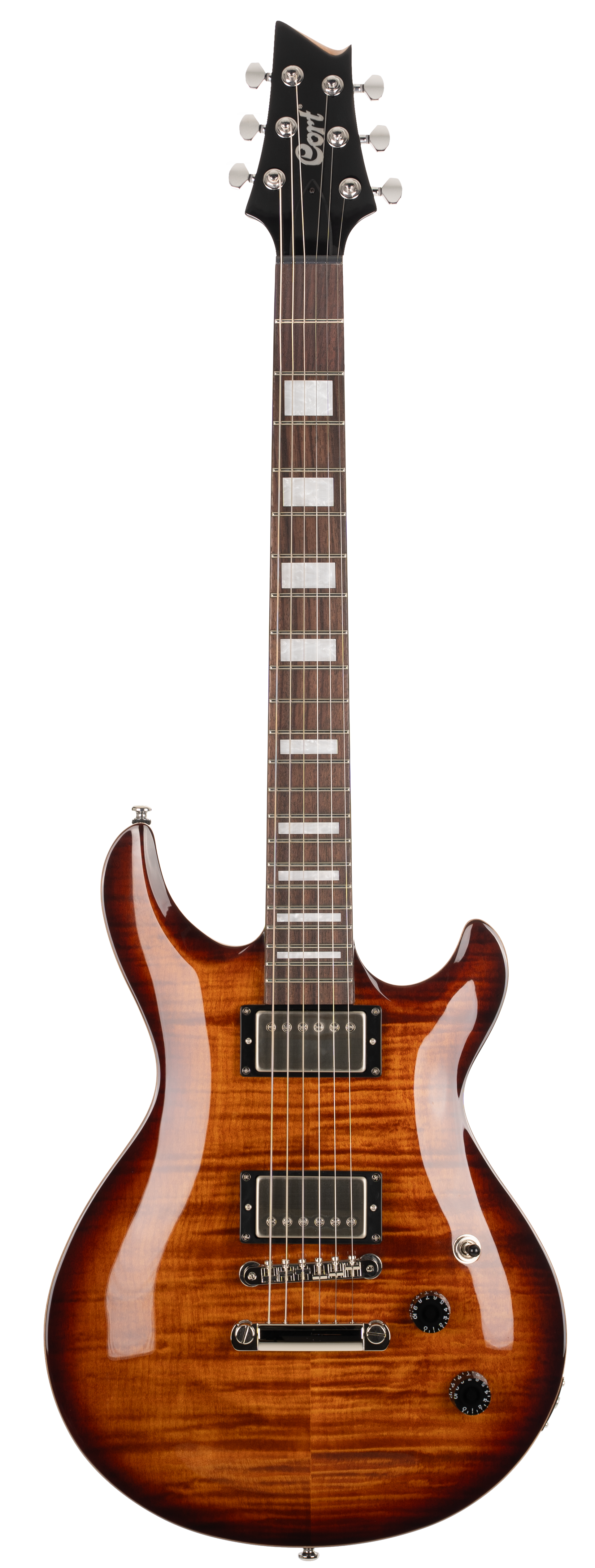 The beloved M600 electric guitar is back, now reintroduced with stunning new finishes - Blue Burst, Tobacco Sunburst, and Trans Black Burst. This modern revival retains the classic double-cutaway design and exceptional craftsmanship that made it a favourite while introducing key upgrades for today’s players. With new Cort® Voiced Tone VTH59 pickups and Cort® locking tuners, the M600 offers versatile tones and improved tuning stability. Its set-neck construction, mahogany body, and flamed maple veneer top deliver warm, rich sound with modern performance, making it a perfect blend of classic design and contemporary upgrades.