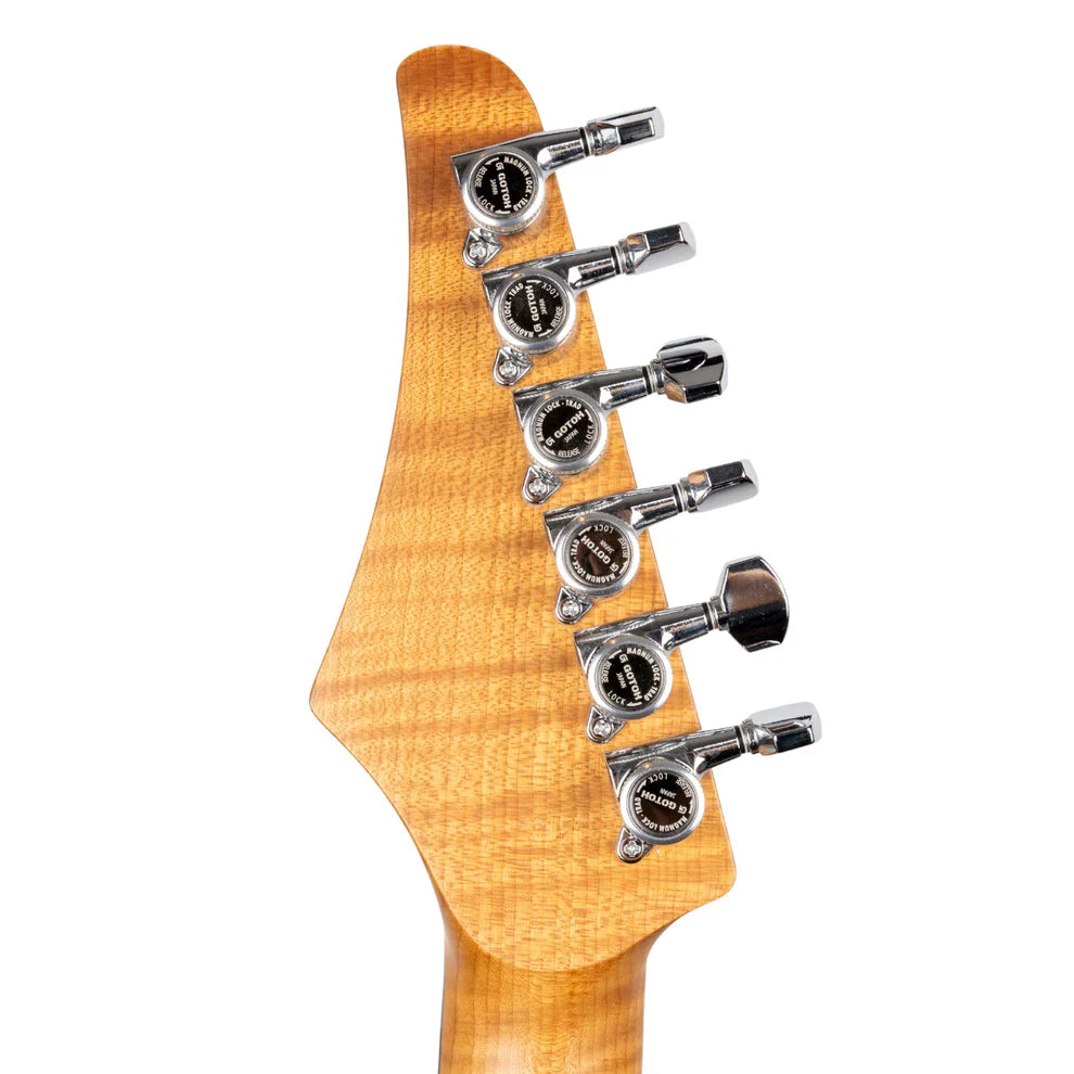 This guitar captures the essence of 1980's guitars from the West Coast USA.The Polaris combines vintage feel with modern playability, featuring a contoured lightweight obeche body, custom Cream T pickups, and a roasted flame maple neck. Whether you're after classic rock tones or something new, the Polaris delivers. It's our take on West Coast guitar evolution - bridging past and present.
