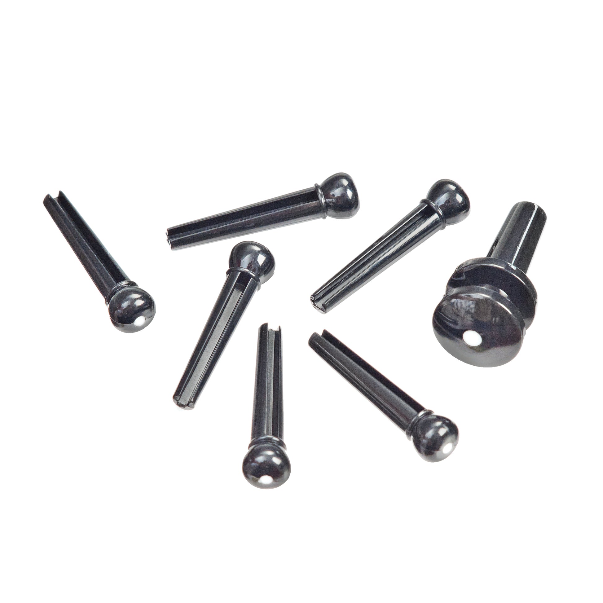 D'Addario injected molded bridge and end pins are made from high-quality ABS thermoplastic and are a direct replacement to any acoustic guitar. Black with ivory dot.