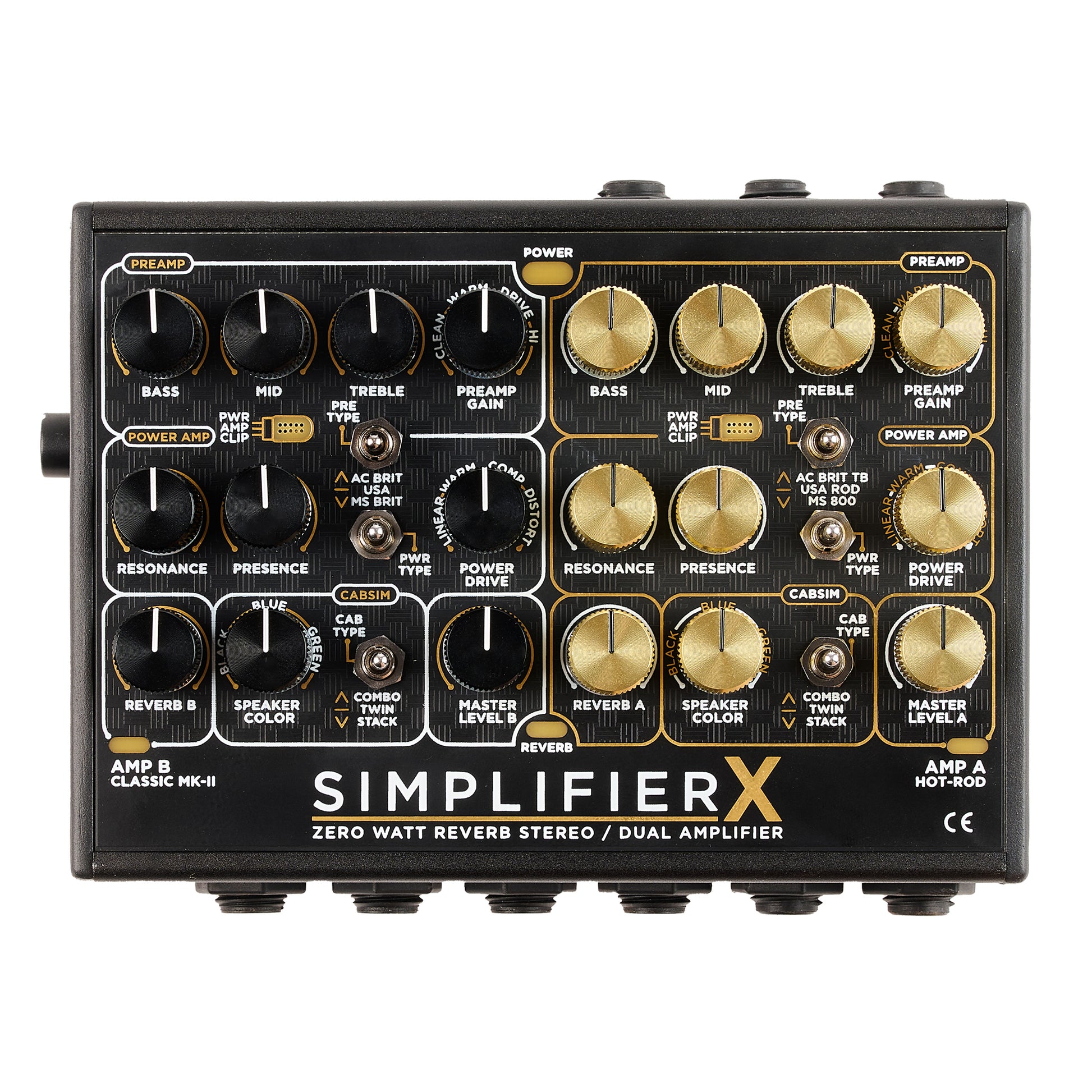 - A/B Amp + A/B Cab: The Simplifier X starts with a standard dual mono mode, where you swap between your two amp/cab combos with the click of a switch. This setting is perfect for players who need to instantly swap between different tones, with each amp sporting its own preamp, power amp, cab, reverb level, and loop effects.