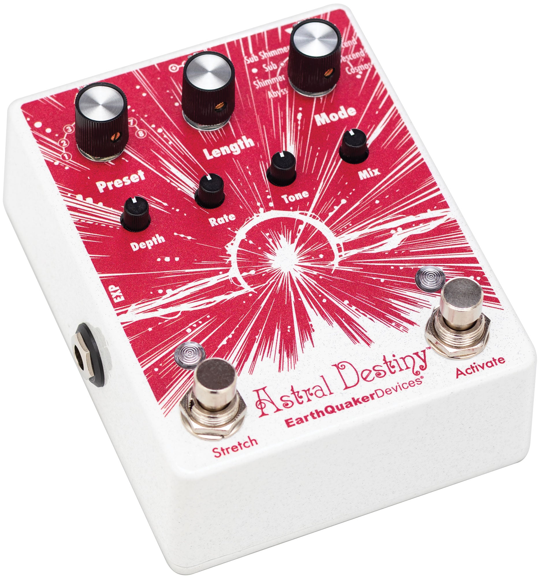The Astral Destiny is a compact and powerful modulated octave reverb pedal that features 8 reverb modes with 8 editable presets, assignable expression control, tails for natural reverb decay when the effect is bypassed and a super cool stretch feature that doubles the length of the reverb while adding an adjustable pitch bending effect.