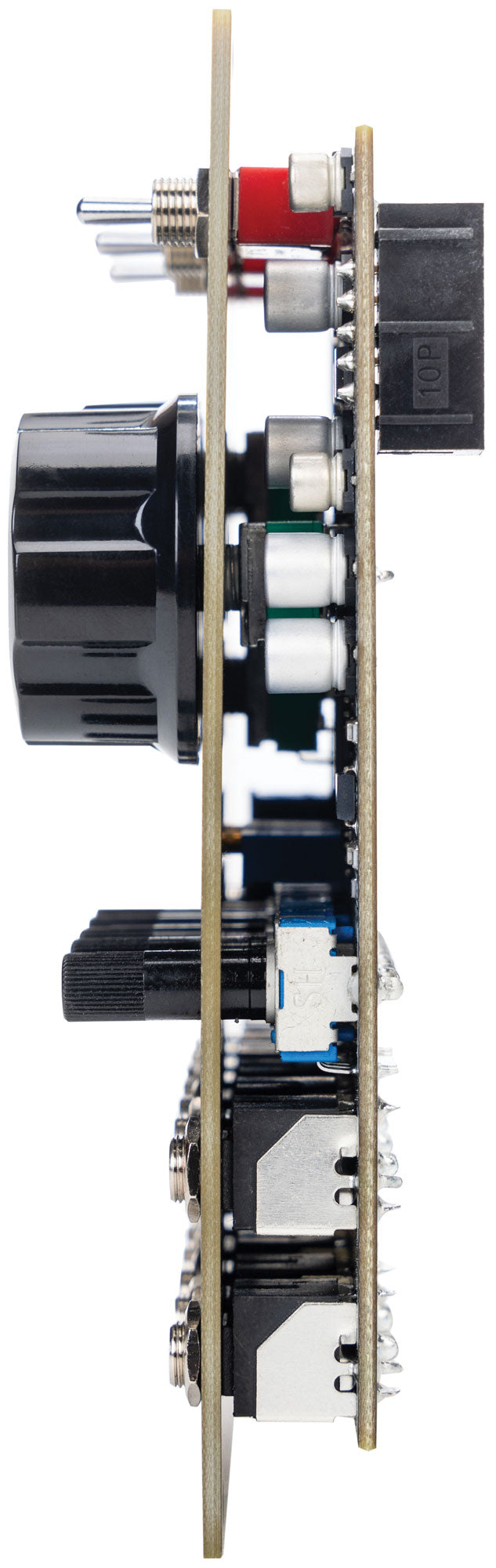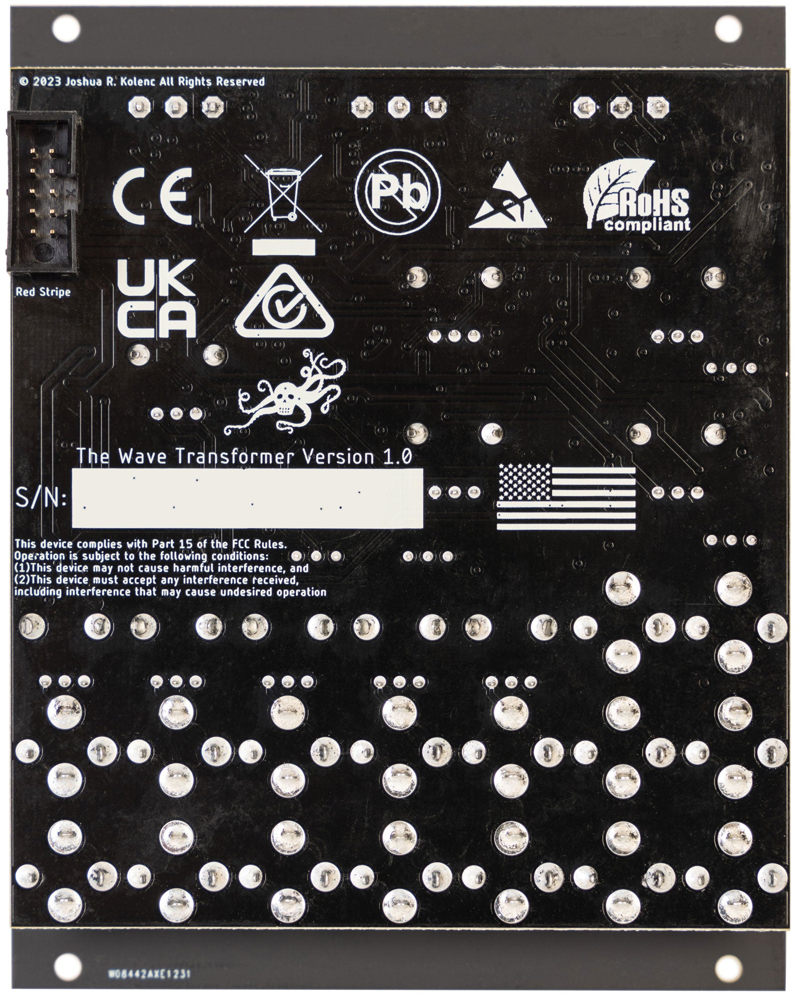 The Wave Transformer is an analog, vintage-voiced, voltage-controlled oscillator with over 8 octaves of accurate pitch tracking. It has 7 simultaneous wave outputs, including a unique Complex output. The Transform control morphs from a basic waveform through many strange iterations into a complex, gnarled mass of audio mutations at the Complex output. You can yield countless variations on these permutations by combining this novel circuit with Hard Sync, Soft Sync, Linear FM and Exponential FM. Additionally, you can mute the source waveform to use the circuit as a harmonic gate/VCA, rendering The Wave Transformer a voice unto itself. If that is not enough, there is a Shape Insert that allows you to transform external oscillations and modular-level audio sources.