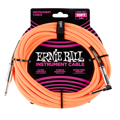 Ernie Ball Braided Instrument Cable 10ft Straight-Angle Orange