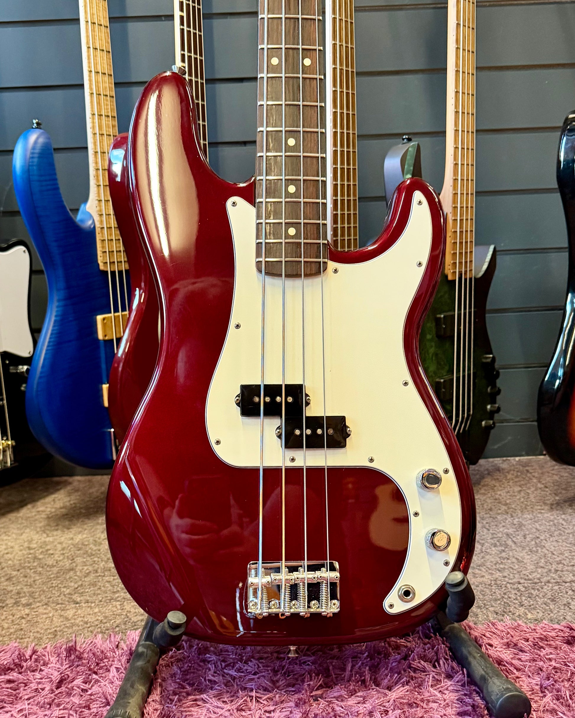 Nice playing precision bass from Fender Mexico. Has had a bit of a bash at some point in it's life which has taken the paint off one corner. Has been patched up but not brilliantly. Doesn't affect the playability at all.