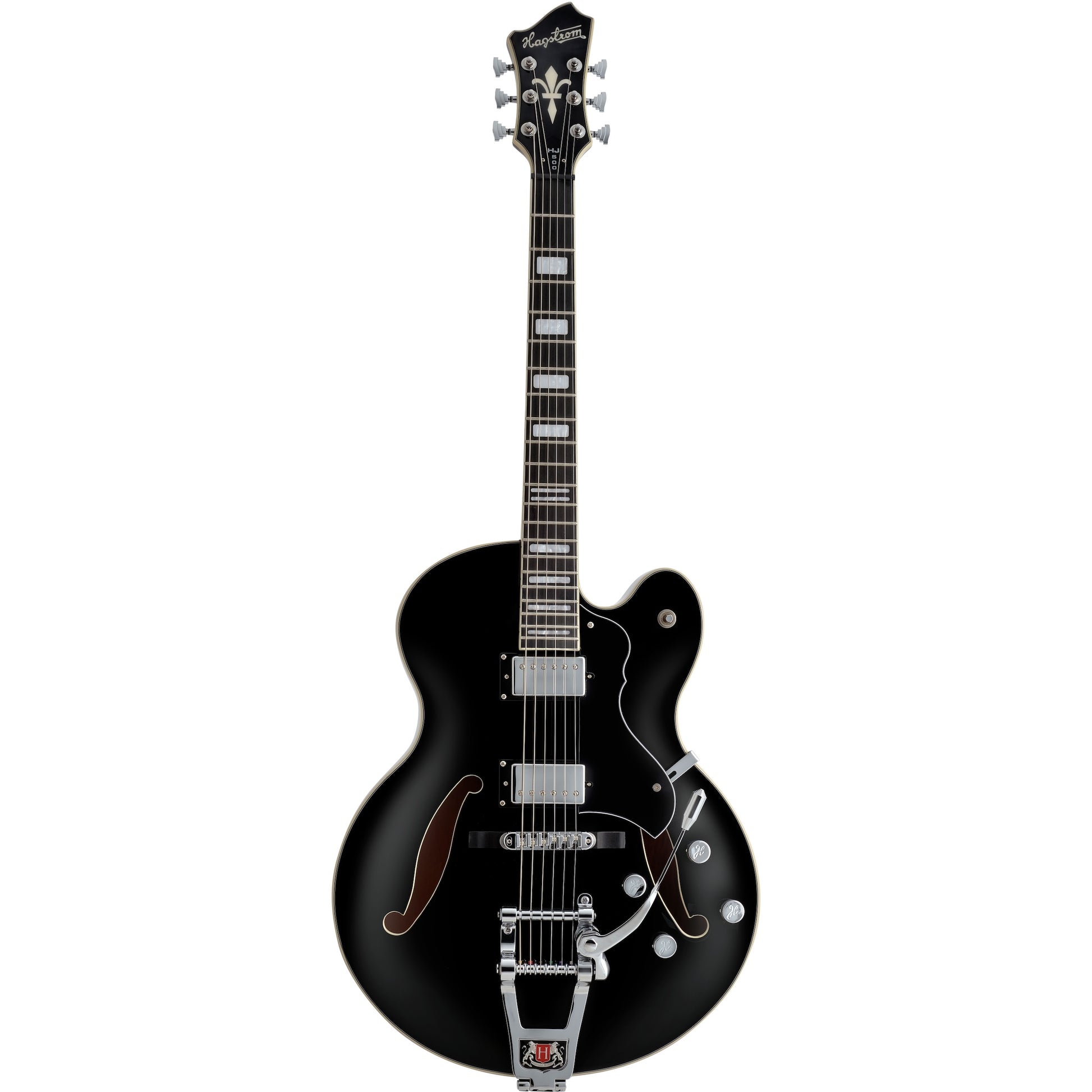 Hagstrom’s Tremar HJ500 model, with its gleaming hardware, is a true work of art. An ebony-supported Tune-O-Matic bridge and Hagstrom’s own silky-smooth Tremar vibrato system give this masterpiece a profound and resonant tone suitable for a variety of musical genres. Our HJ50 humbucking pickups offer vigorous clean and overdriven sounds, with nothing left to be desired.