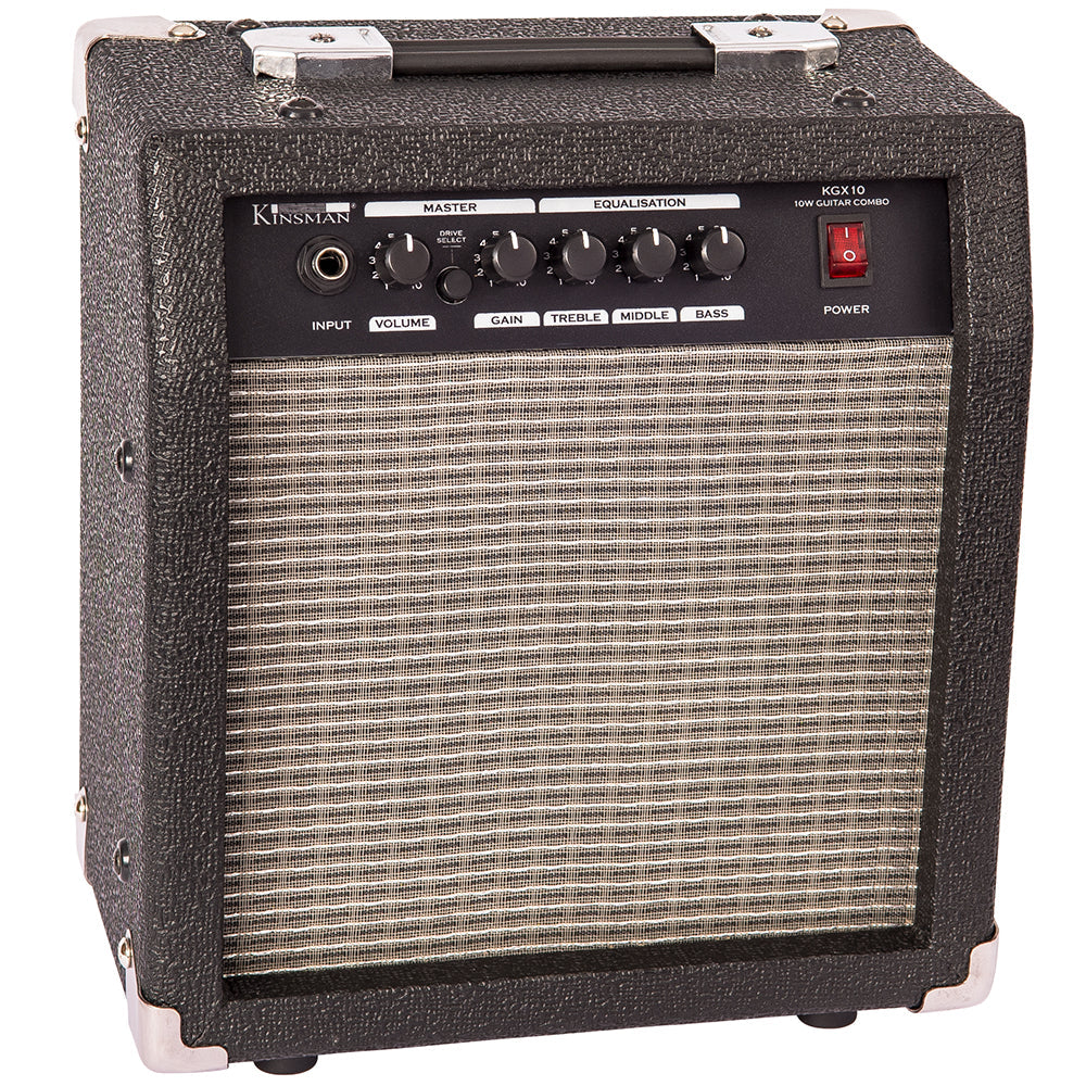 Delivering a full 10 watts, the KGX10 guitar combo has separate controls for Treble, Middle and Bass, Master Volume and Gain, with push-button Channel/Drive Select and headphone out.