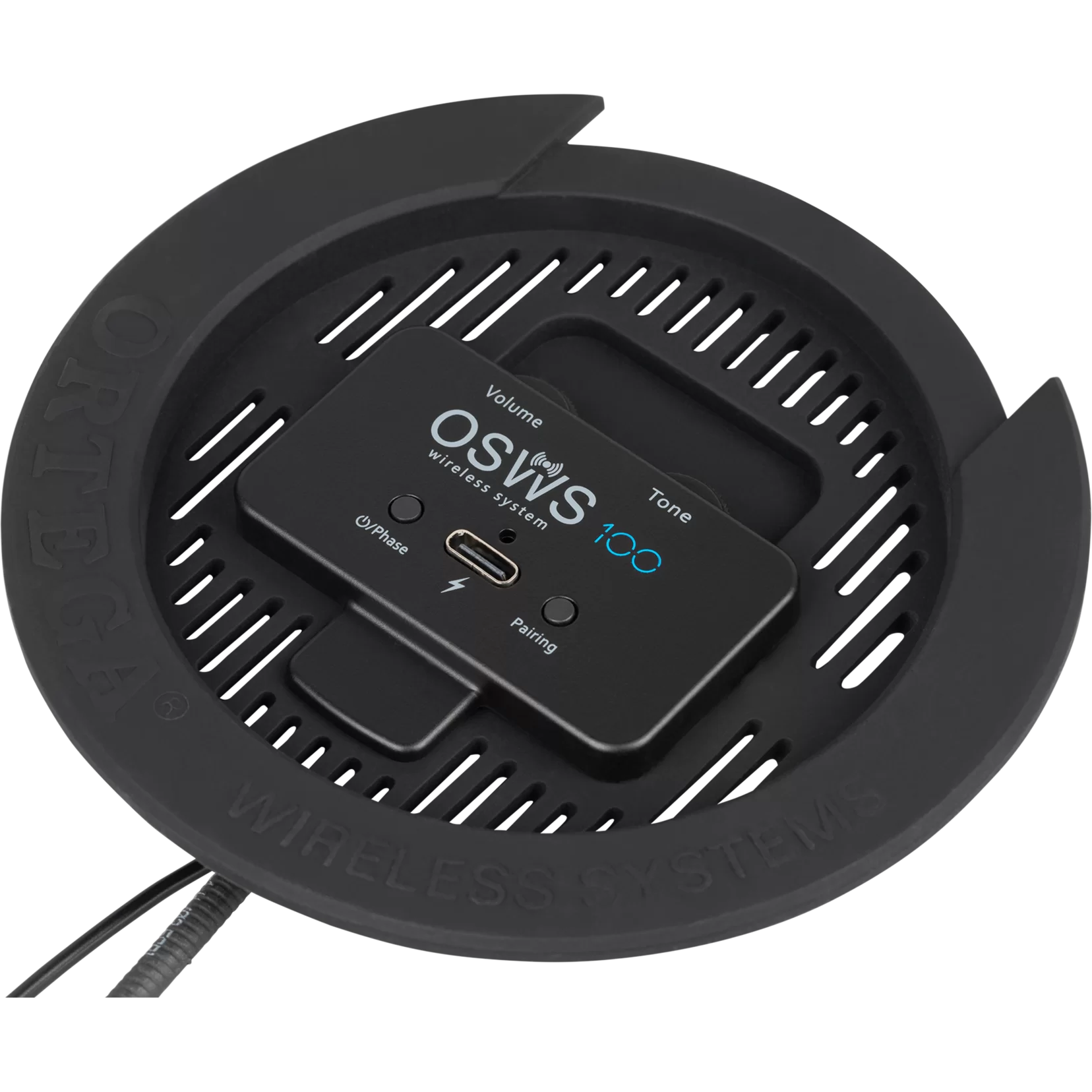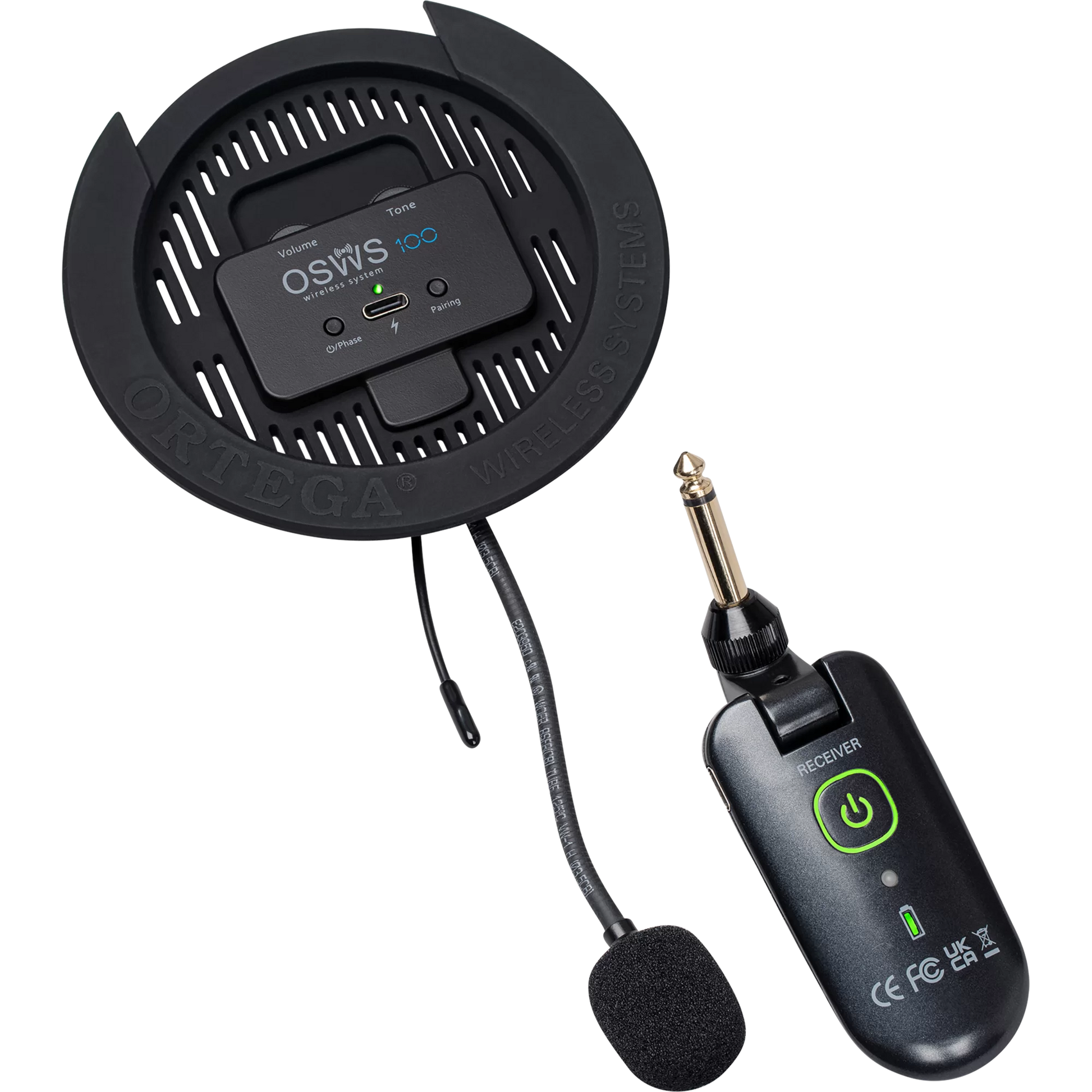 The Ortega Wireless System (OSWS) is an innovative wireless pickup available for guitars with 100 mm soundholes. Designed for guitars without a pre-installed pickup, the OSWS offers easy installation, similar to a soundhole cover. It eliminates the need for complex, time-consuming modifications that could damage your guitar, preserving its natural sound and appearance. Perfect for enhancing live performances and improving stage mobility, the OSWS is ideal for occasional performances and simple amplification.