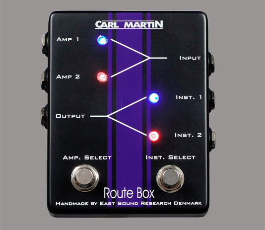 As musicians, we sometimes have to supply ‘more’ gear, in order to adequately meet the demands of a show. The Carl Martin Route Box helps simplify some of those situations. For instance, you might find yourself with two guitars, two amps and one pedal-board. By plugging each guitar into each Instrument In, out to the pedal-board and then back from the pedal-board to the Input, and finally from Amp 1 & 2 Out to each of the amplifiers, you have full use of your pedal-board while using either Guitar 1 or 2 through Amp 1 or 2…..genius!
