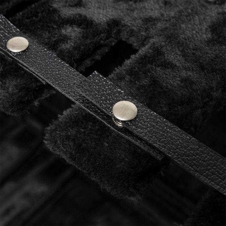 - Materials: Wood (case), black vinyl (finish) and plush (interior)