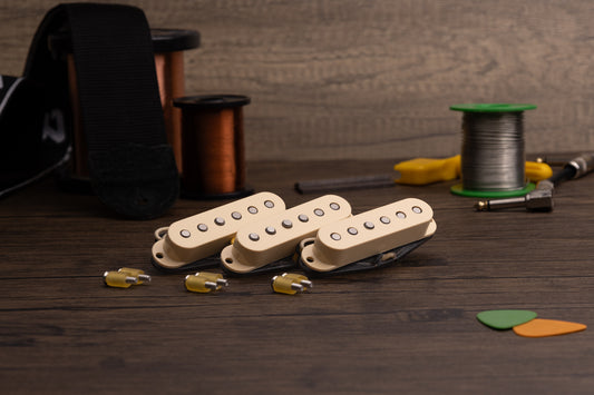 Like some original 1954 and 1955 Strat pickups, the Surfari set from Tonerider pickups are made with Alnico III magnets – offering nice sustain and a bright, warm, compressed attack. For players who like unrivalled clarity and brightness and great dynamics the Surfari set is a great match. We’ve been privileged to have found a great following for the Surfari sets among the Hank Marvin fans – from Midnight to Apache – this set will get you very close to one of the “Holy Grail sounds from guitar history.