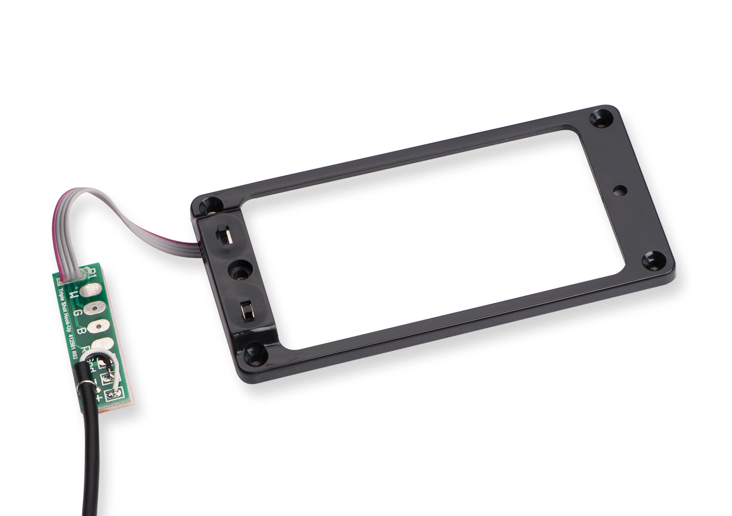 The Triple Shot switching mounting ring is amazing for a variety of reasons. You get tons of tonal variety from the four different sounds it gives you (splitting to either coil, series operation, and parallel operation). You are able to easily switch between the various sounds with just the flip of your finger. No more reaching for pushpulls there are two small slider switches at the low E-string edge of the ring for easy access. And, the Triple Shot is incredibly easy to hook up.