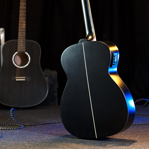 Washburn EBONY FE Folk in Natural Matte. The vintage-style body on the Deep Forest Ebony FE is small and comfortable. The sonic combination of this slightly undersized body with these woods is really special. The wood blends are naturally full of deep, rich overtones that bring forward its low end. The smaller body and bracing assure that it is also articulate and balanced. Need to switch from acoustic to amplified? No problem ? the Deep Forest Ebony FE is equipped with Barcus Berry active electronics, including integrated tuner